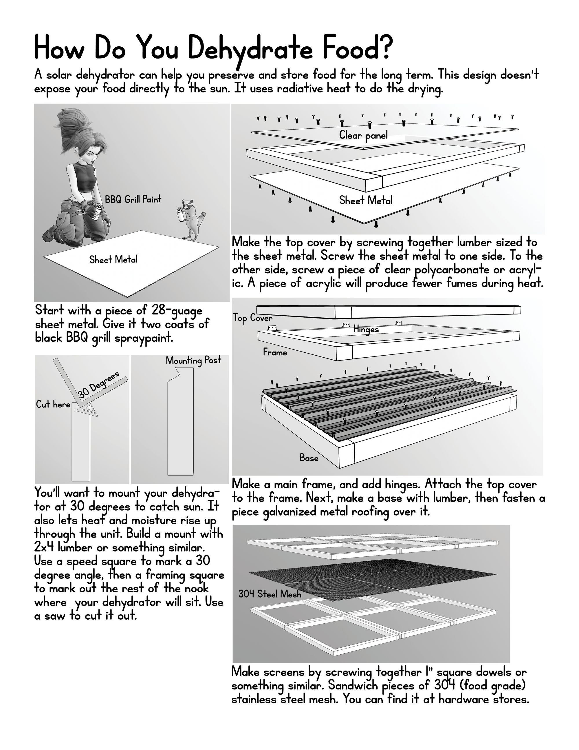 Solar dehydrators work without reliable power, and that's a major plus. The tricky part is figuring out how to make your own. I looked at several guides.